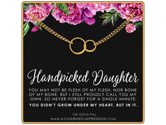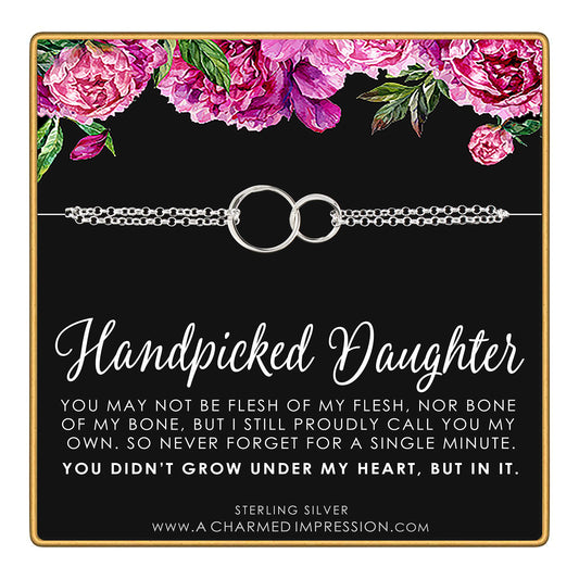 Handpicked Daughter, 2 Interlocking Circles Bracelet, Gift for Stepdaughter, Infinite Love, Bonus Daughter, Adopted Child, Silver or Gold