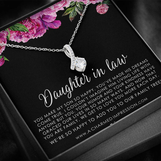 Daughter-In-Law Gift Necklace: Wedding Gift, Jewelry From Mother-In Law, Gift for Bride, Love Knot Necklace 14k White Gold