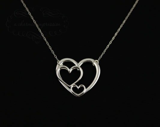Three Generations of Love • Sterling Silver Heart Keepsake Necklace • Grandmother, Mother, Daughter/Son Jewelry • Gift for Mom Grandma Grandchild
