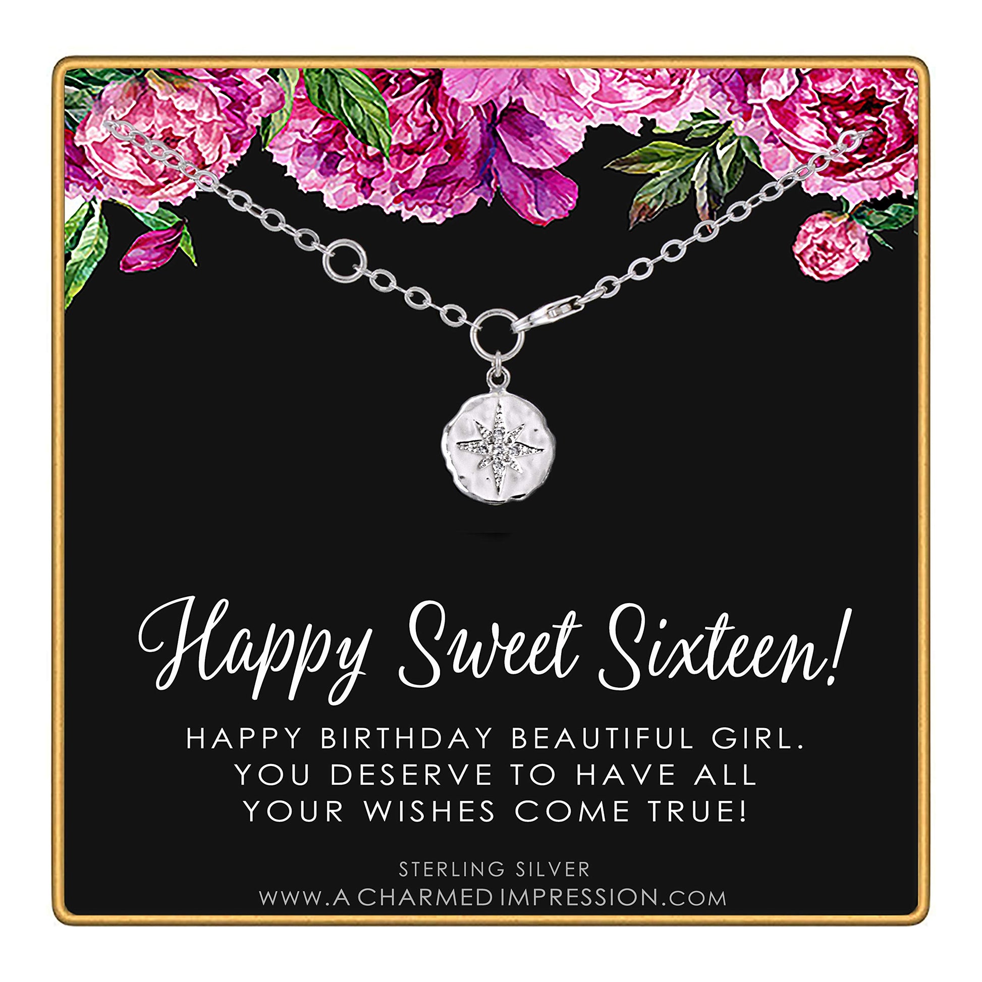 Sweet 16 • 16th Birthday Gifts for Teen Girls • Silver Bracelet • CZ Diamond Starburst Charm • Bracelets for Women • Sixteen Birthday Gift for Daughter Best Friend Girlfriend Granddaughter