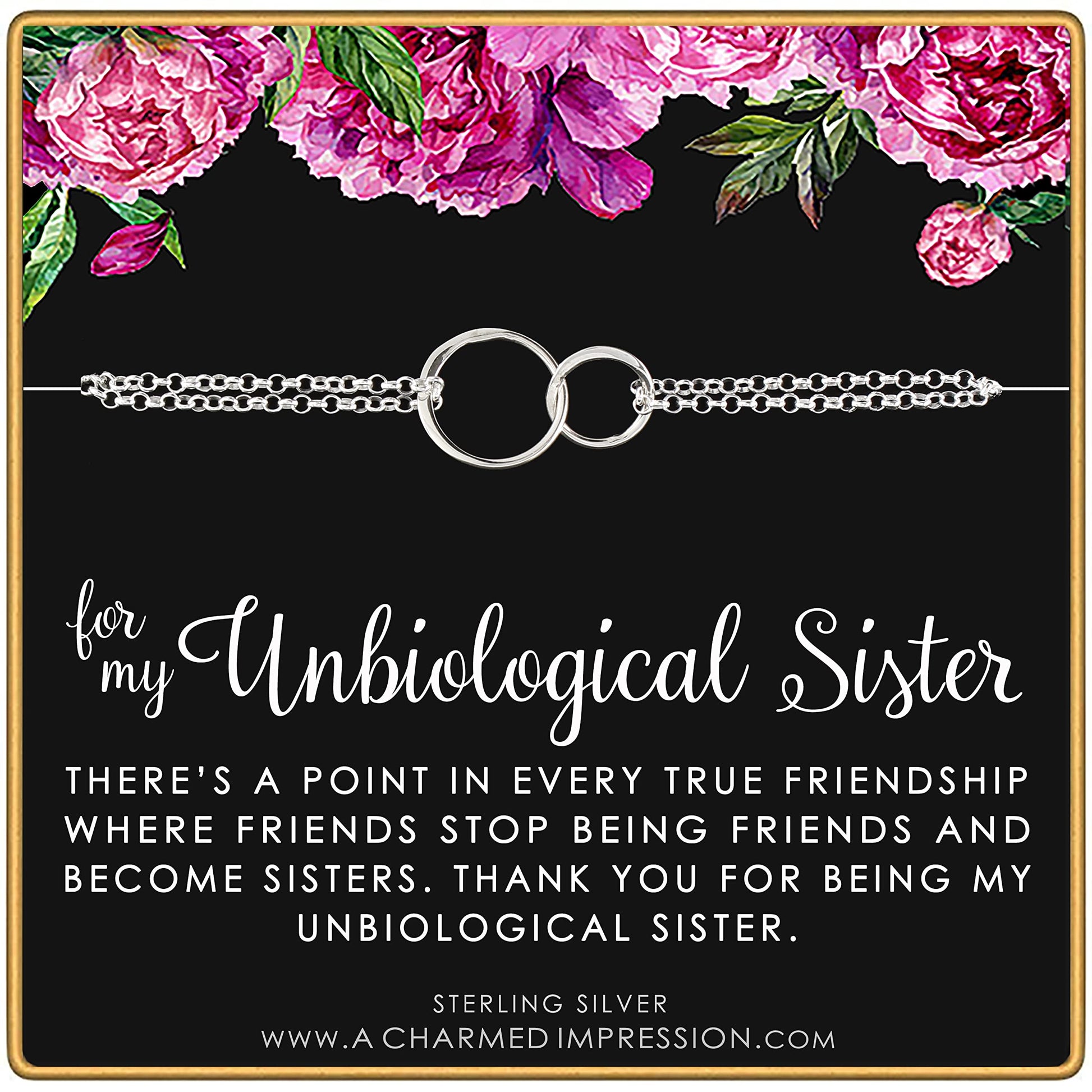 A Charmed Impression Unbiological Sister Gift • Sterling Silver Bracelet for Women • Stepsister Gifts • Love Friendship • Two Circles Bracelet • Bonus Sister Bracelets for 2 3
