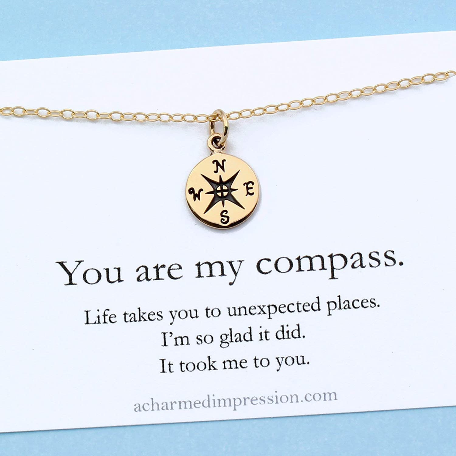 You are my Compass • I'd be Lost Without You • 1/2 Inch TINY Gold Charm Necklace • Unique Handcrafted Gift for Wife/Girlfriend/Best Friend
